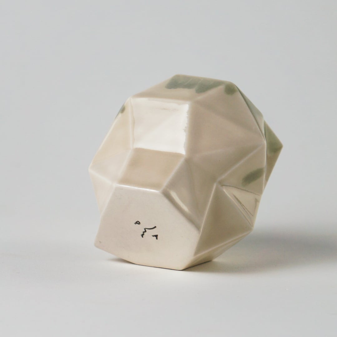 3Dプリント出力したプラスチック原型を元に、鋳込みという技法で作られています。現在、素焼き生地は佐賀県の波佐見の職人の手で生産され、その後東京の工房にて施釉、焼成を行っています。