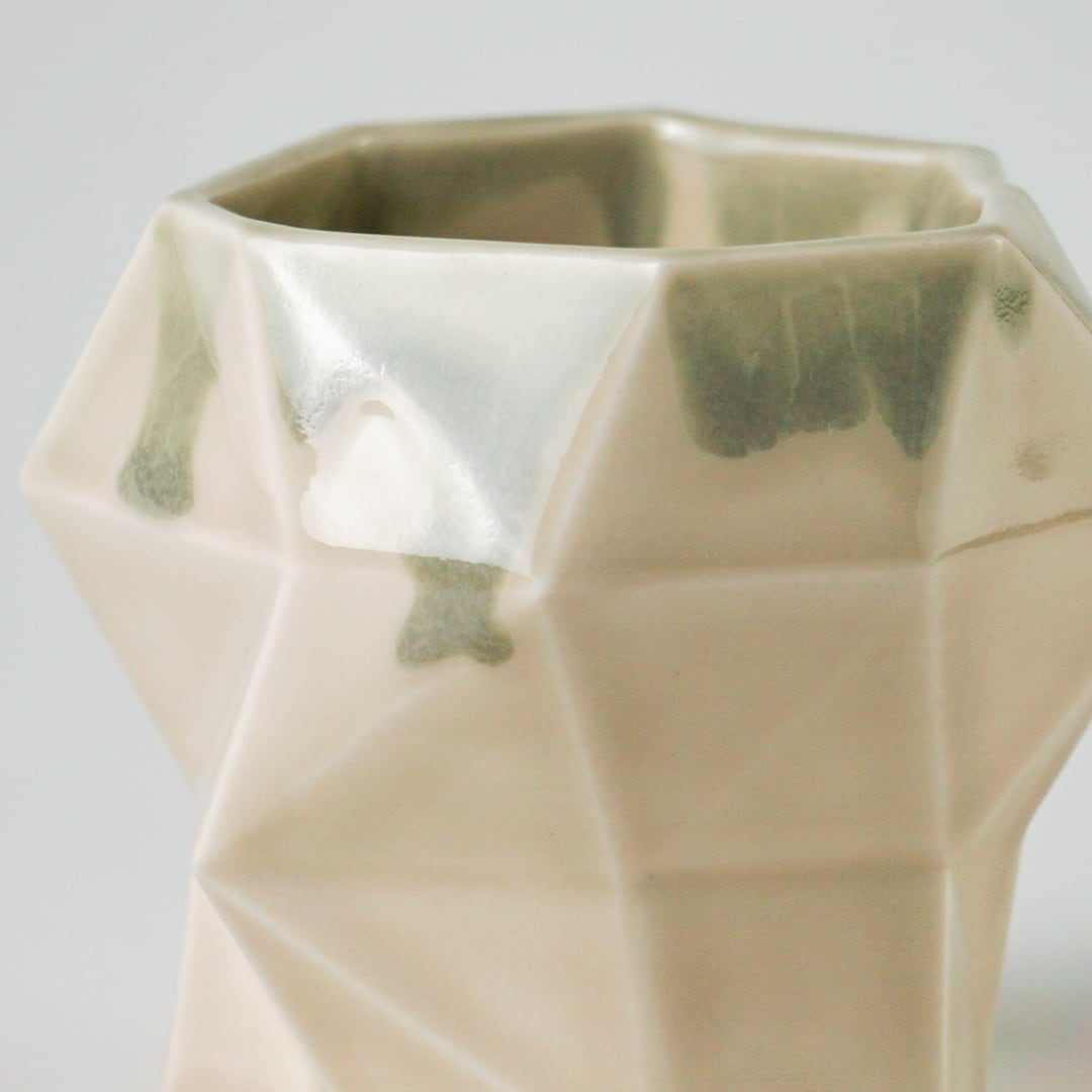 いかにもバーチャル空間で生成されたというような形状をしていますが、肌触りの良いマットな質感の釉薬で仕上げられたボディは触れてみると意外なほど手に馴染みます。